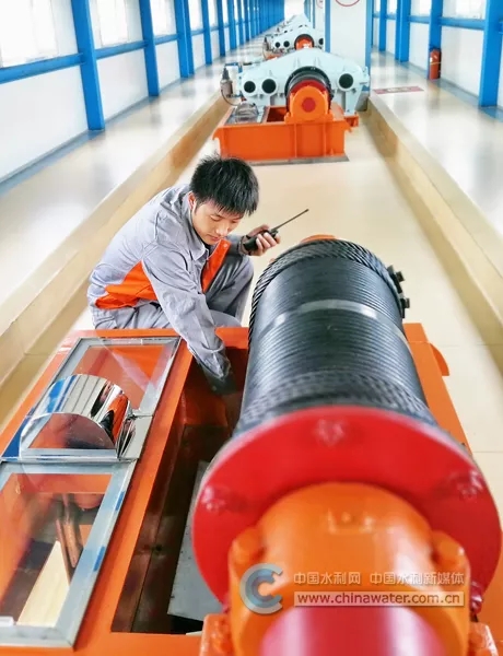 屈家店枢纽永定新河进洪闸助理工程师曹承岳检测工作闸门试运行情况本报记者李先明/摄