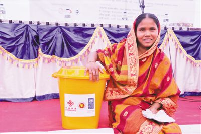 2018年2月,中国政府和联合国开发计划署向孟加拉国北部洪泛平原受洪灾影响的群众提供援助。图为领取救灾物资的当地民众。 联合国开发计划署供图
