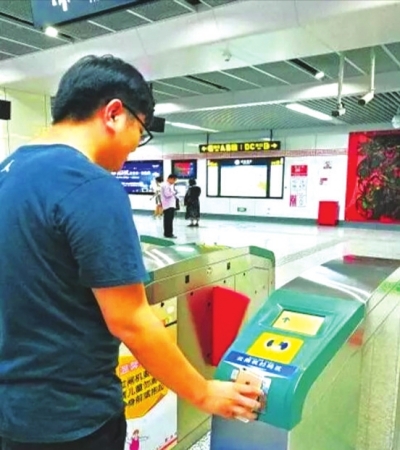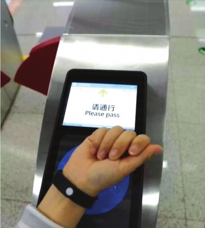 ③智能手环设备:凡带有NFC功能的智能手环,均可在轨道交通1号线各站实现感应购票。在进出站时,只需将带有NFC功能的智能手环贴近闸机刷卡区,即可乘车实现瞬时购票。