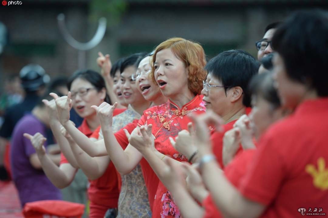 6月7日,广州执信中学考点,班主任穿红色旗袍列队迎接祝考生取得好成绩“666”。