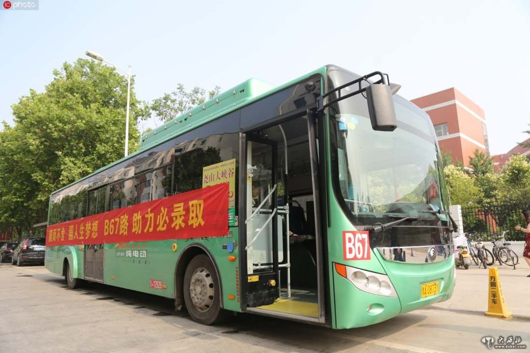 2019年6月7日,郑州公交在一高考考点外设置了服务考生家长的公交车。公交部门特意选取了谐音“必录取”的B67路公交车。车内空调开放,还提供饮用水、常用药品、血压计等供家长使用。此外,还特意设置了一个拳击沙袋,供考生或家长“解压”。
