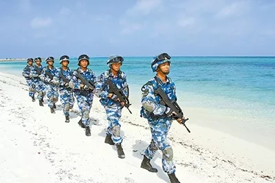 中建岛守备营官兵环岛巡逻。蔡盛秋摄