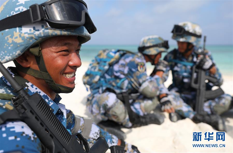 中建岛守备营哈尼族战士节周在训练间隙休息(5月19日摄)。新华社记者 琚振华 摄