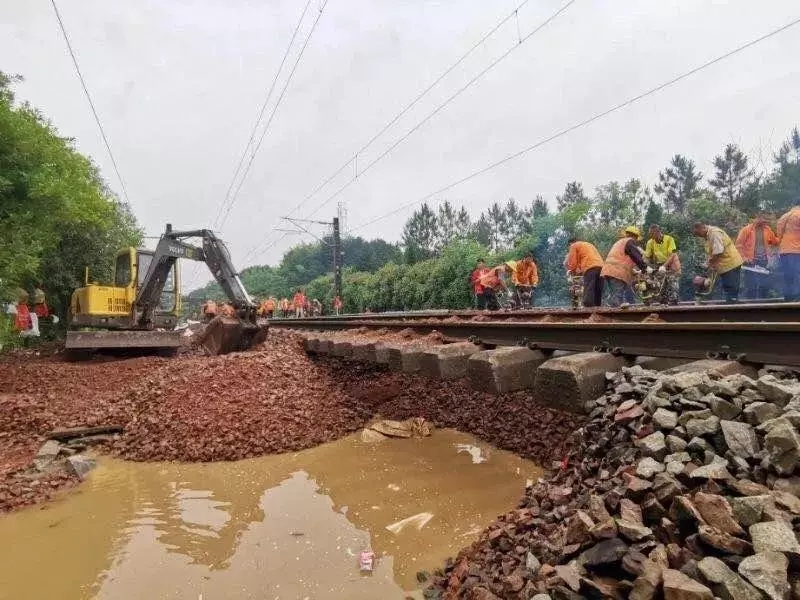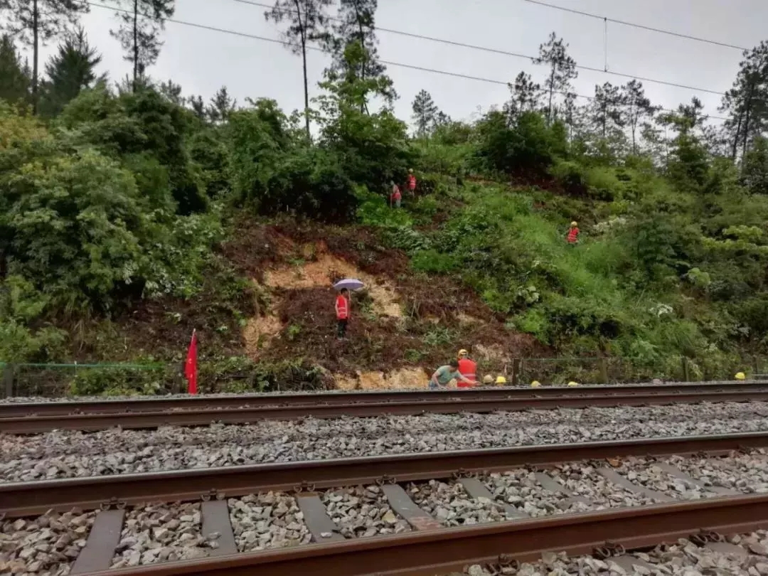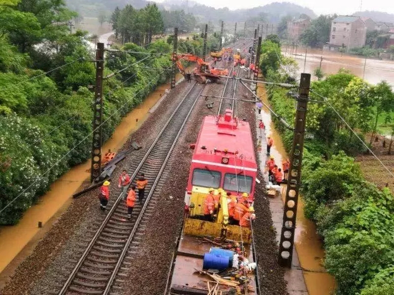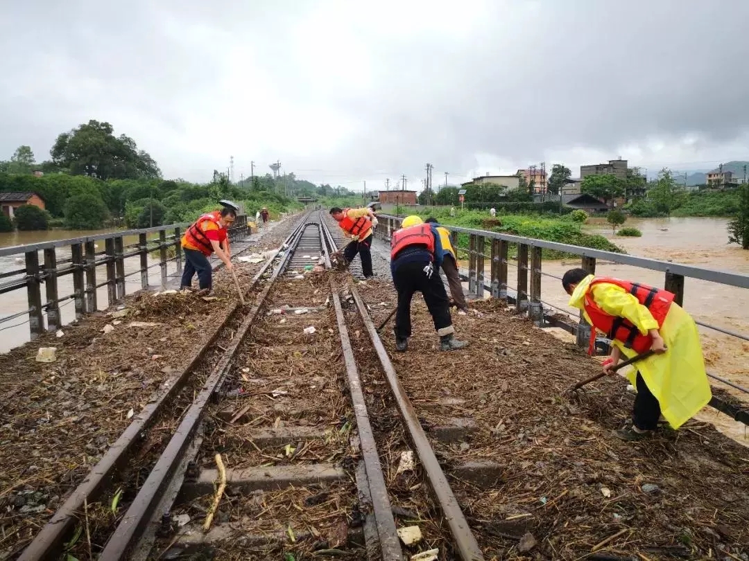 鹰潭工务机械段组织安排大型养路机械对线路进行紧急抢修。龙岩工务段、萍乡工务段、永安工务段、赣州工务段职工冒雨巡查,对发生水害的线路区段进行紧急抢修。