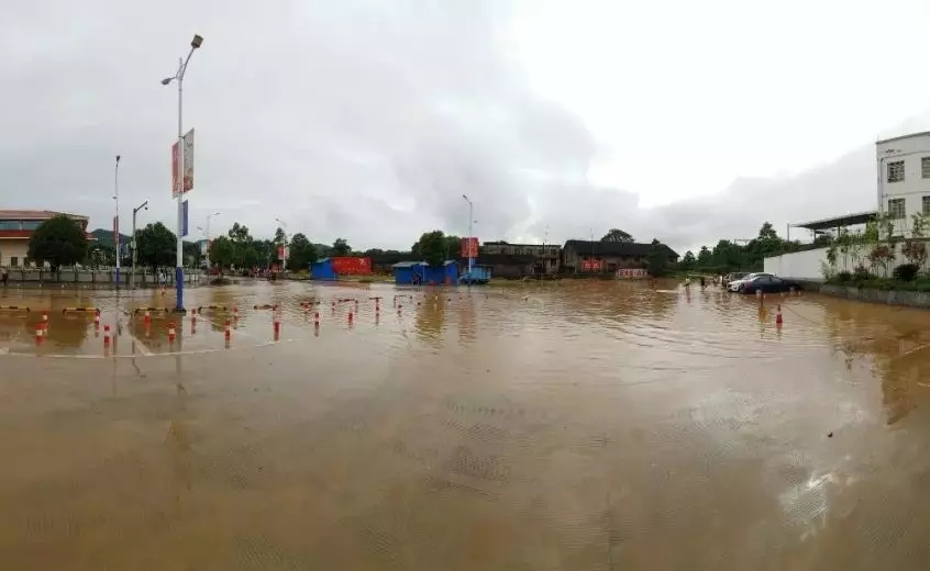 受积水影响,桂林全州县城去往全州南站主干道全线封路,全州南站更是遭遇洪水围困。