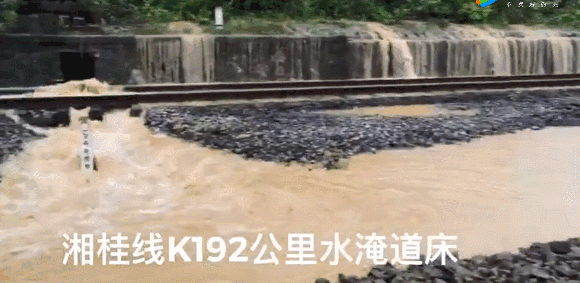 暴雨导致水位上涨,桂林、全州地区铁路沿线河流出现1958年以来最大洪水。湘桂线多处铁路道床被洪水淹没。