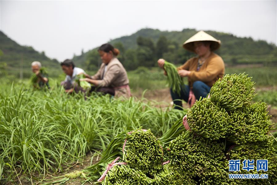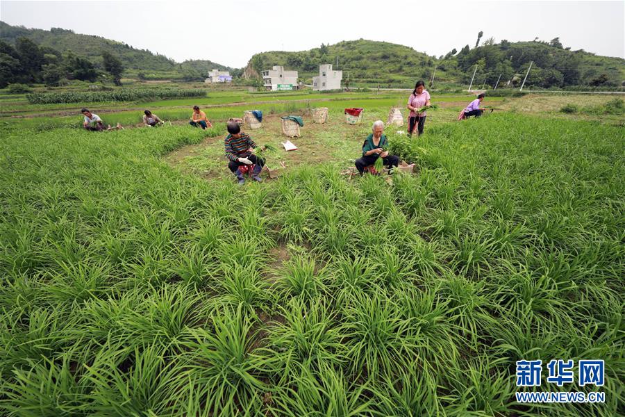 6月24日,贵州省毕节市黔西县洪水镇永平村村民在收割韭菜。 新华社发(欧秀灯 摄)