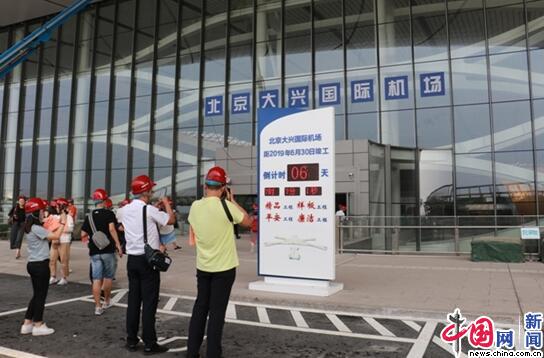 6月24日,参加京津冀协同发展线下走访活动的记者来到北京大兴国际机场航站楼现场采访。(中国网记者 白石摄影)