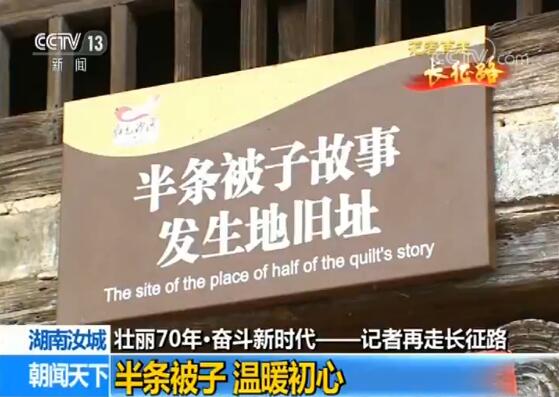 央视网消息:中央广播电视总台“长征路万里行”移动直播报道团队昨天来到了湖南汝城的沙洲村。1934年11月,红军长征经过这里的时候,3位女红军送给当地百姓半条被子的故事,如今已经广为流传。下面,让我们跟随记者去往沙洲村,回首那段艰苦岁月里的血脉情深。