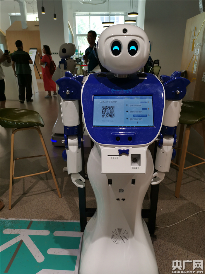 天津市人力资源和社会保障局定制的机器人“小雷”。(央广网记者 郭书琼 摄)