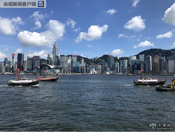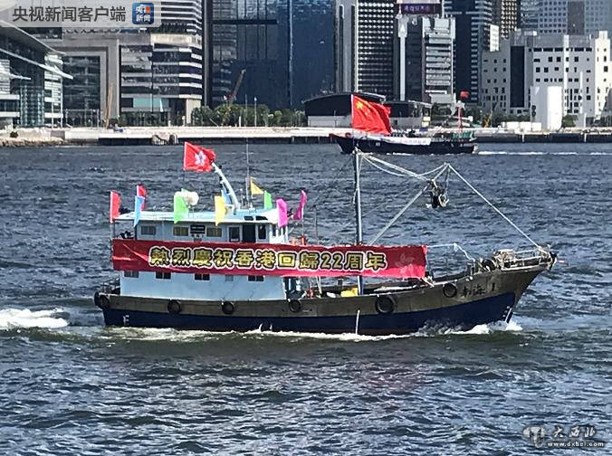 据了解,香港渔民团体联会在维多利亚港举行“香港渔民庆国庆、回归及撑警渔船巡游”。70艘渔船由港岛西环出发往东行,途经中环及湾仔海岸,在北角码头折返并经过尖沙咀后返回西环码头。每艘渔船上都挂着“热烈庆祝香港回归22周年”,“全力撑警保卫家园”等支持警察执法及庆祝回归的横幅,有的渔船拉响号笛,吸引了维港两岸众多市民游客观看。