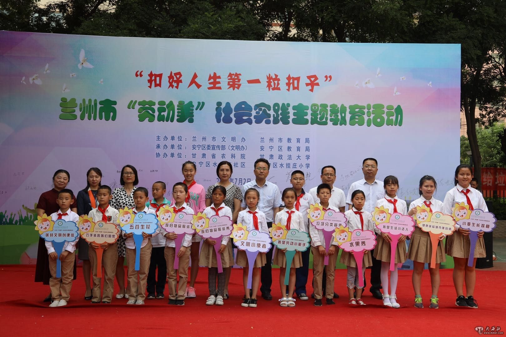 本次活动由市文明办、市教育局主办,安宁区委宣传部、区教育局承办。活动中,李鑫泉、刘尊仁、邹卓三位兰州市新时代好少年向水挂庄小学的班级代表赠与了图书;学生代表宣读了“劳动最美丽”倡议书,号召全体同学们行动起来,继承中华民族优良的传统美德,从身边的一点一滴做起,从小培养劳动习惯,树立劳动意识。孩子们以班级为单位分为十一个小组,分别开展巧手装扮我们的家、五谷生花、废旧物品服装秀、我是劳动小能手、小麦生长探秘等十一项内容。