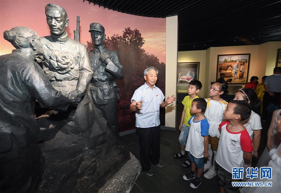 6月29日,槐坎中心小学的孩子们在江南红村听老党员介绍新四军的革命历史。 暑期伊始,浙江省长兴县多所小学的孩子们开启暑期第一课——“红色课堂”。他们来到新四军苏浙军区纪念馆、江南红村等革命教育基地,通过参观、亲身体验等方式,了解和学习艰苦朴素、英勇奋斗、甘于奉献等优良传统,丰富暑期学习生活。 新华社记者 徐昱 摄