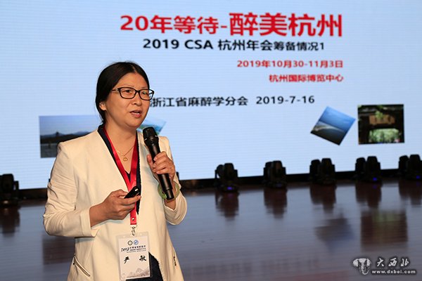 中华麻醉学杂志编委、 浙江大学医学院附属第二院麻醉科主任、主任医师严敏演讲。 贾笑云 摄