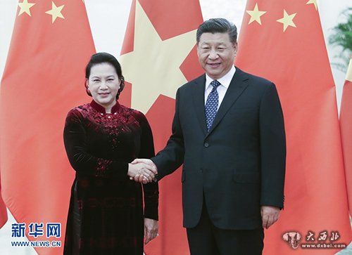 央视网消息(新闻联播):国家主席习近平12日在人民大会堂会见越南国会主席阮氏金银。