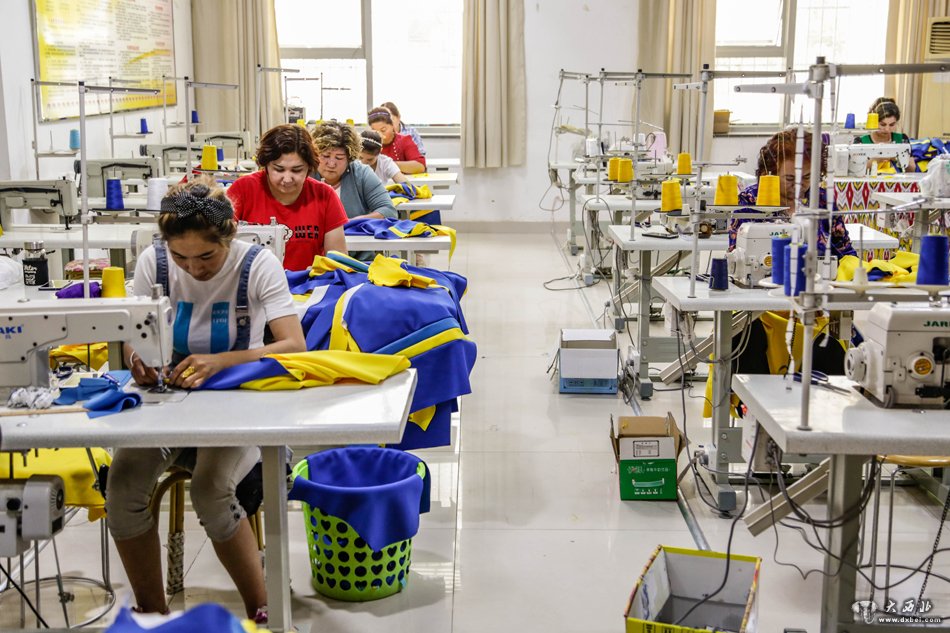 尉犁县达西村的手工艺农民合作社缝纫车间内,来自本村的女工们正在认真工作。