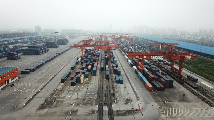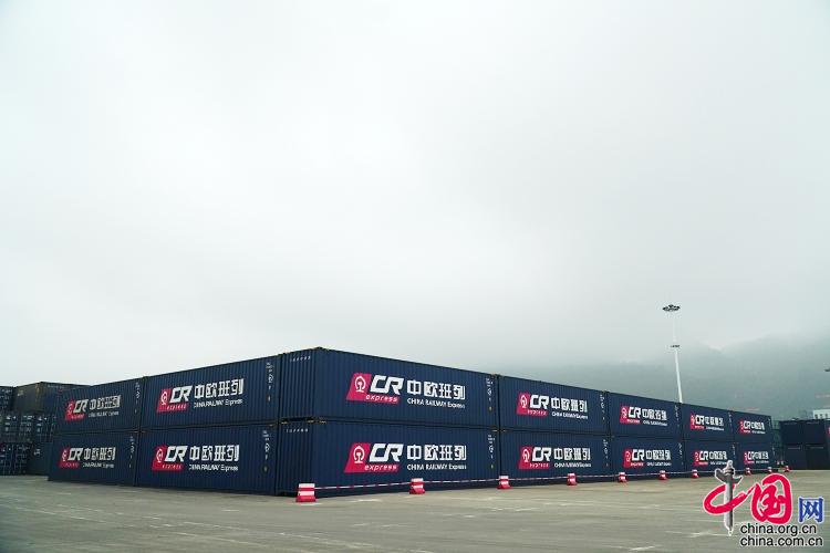 重庆国际物流枢纽园区存放的中欧班列集装箱。中国网杨佳摄影