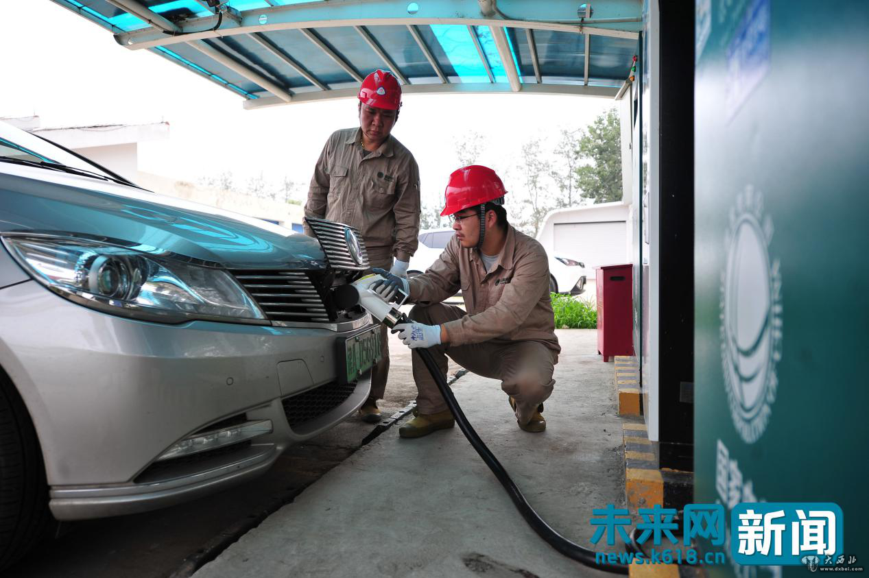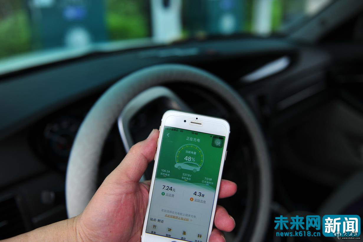 未来网天津7月31日电(记者刘文静何欣)在京津塘高速徐官屯服务区的电动汽车充电站,电动汽车车主正在为汽车进行充电。运用大数据和互联网技术,打开“e充电”手机App,即可查看充电情况、进行结算,和查找下一最近充电站等。