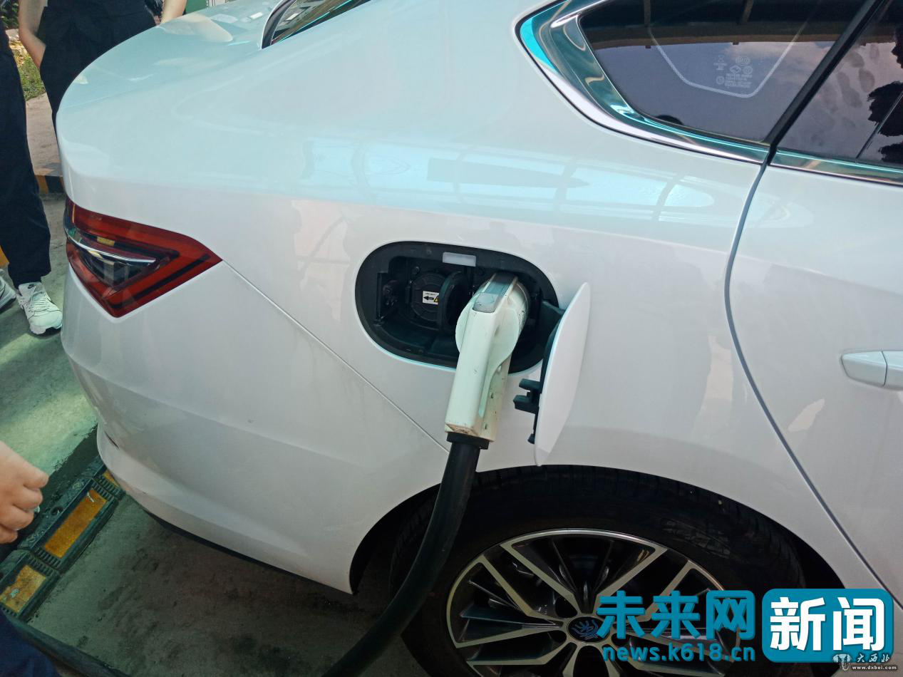 电动汽车车主正在为汽车进行充电。未来网记者刘文静摄