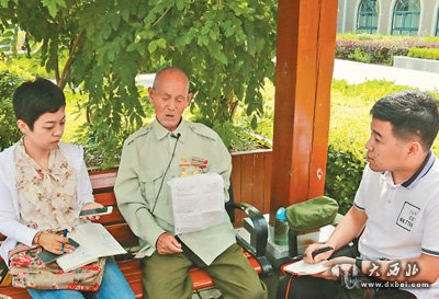 8月6日,在延安八一敬老院,91岁的梁克兴(中)讲述长征的故事。