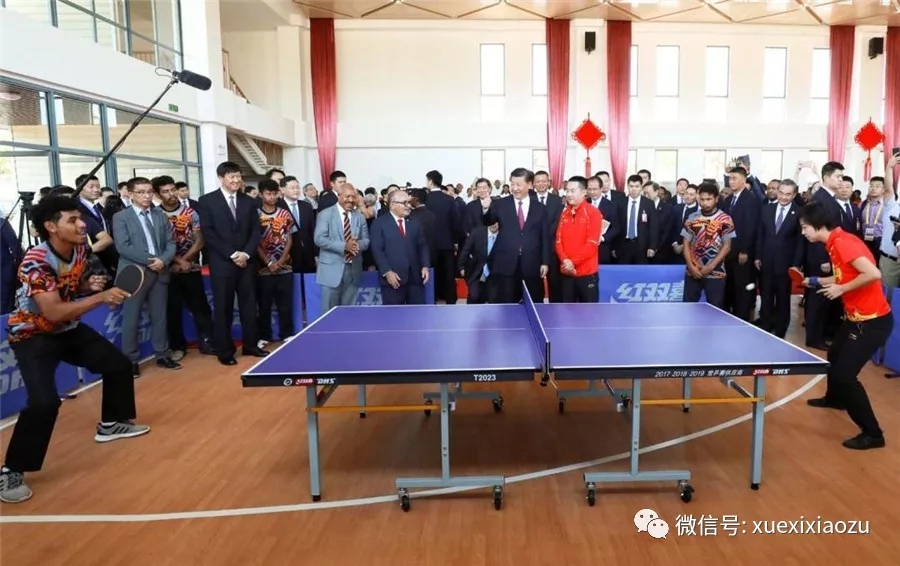 2018年11月16日,中国援建的巴布亚新几内亚莫尔斯比港布图卡学园正式启用。习近平主席和巴布亚新几内亚总理奥尼尔共同出席启用仪式,并见证了精彩一幕:中国教练员、前奥运冠军张怡宁现场指导巴新运动员训练。习近平鼓励他们争创佳绩,做两国人民友好使者。