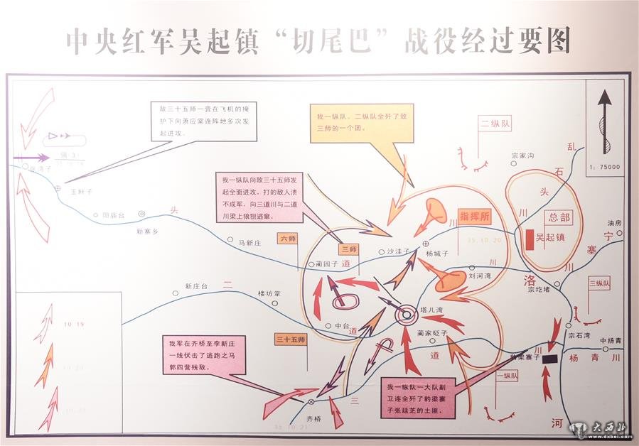 这是中央红军长征胜利纪念馆内展出的中央红军吴起镇“切尾巴”战役经过要图(8月7日摄)。新华社记者罗晓光摄