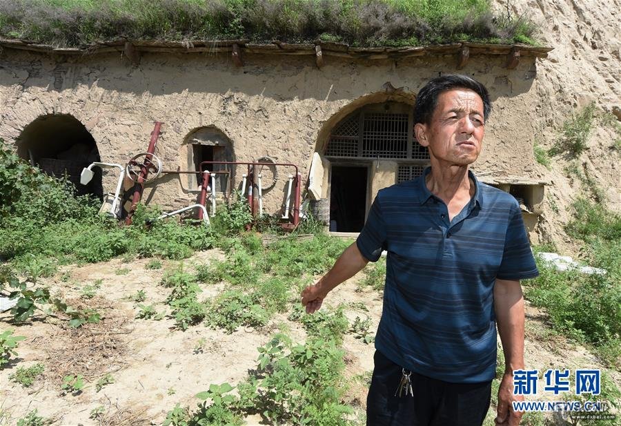 吴起县倒水湾村民张新介绍中央红军曾住过的窑洞,他爷爷张宪杰曾给中央红军提供了做饭的水缸(8月7日摄)。新华社记者罗晓光摄