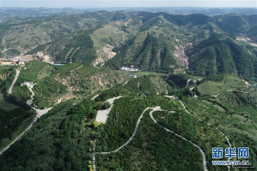 空中俯瞰吴起镇“切尾巴”战役所在地(8月7日无人机拍摄)。新华社记者罗晓光摄