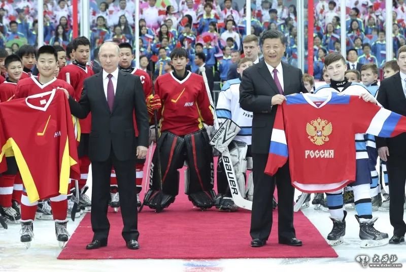 2018年6月,习近平与俄罗斯总统普京在天津共同观看中俄青少年冰球友谊赛。习近平和普京在冰场同两国小队员逐一击拳问候。小球员们还分别向习近平和普京赠送了俄、中两队球衣。