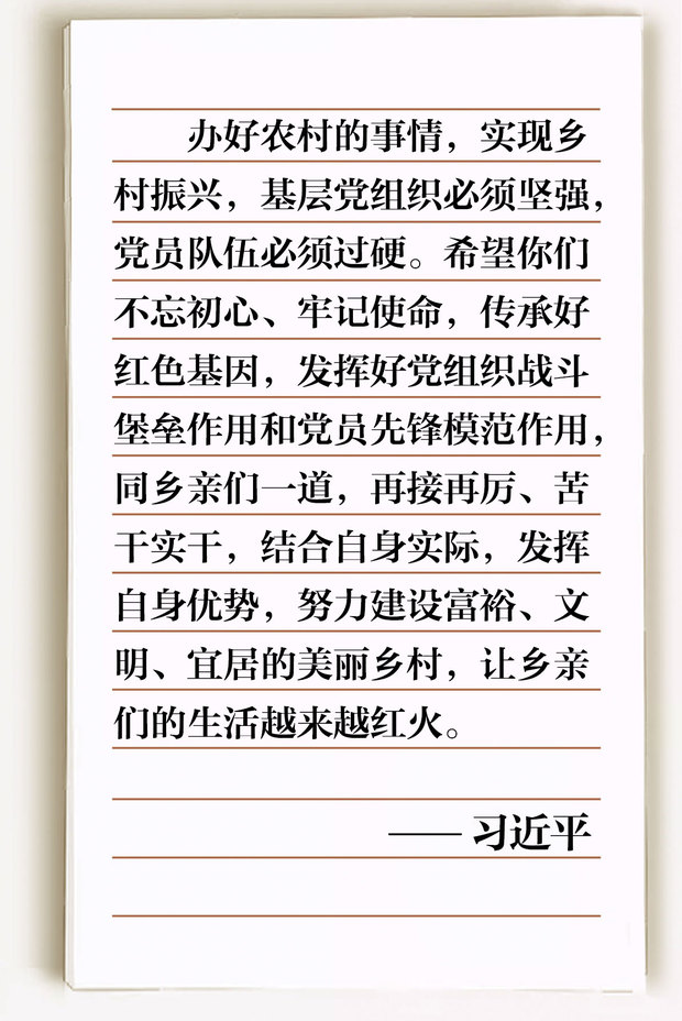 2018年2月,横坎头村全体党员给习近平总书记写信汇报村里发展变化。“15年前到你们村的情景我都记得,我一直惦记着乡亲们。”习近平总书记的回信饱含深情。
