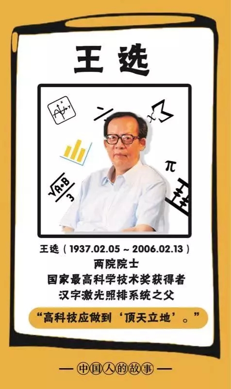 新中国成立70年来,电子信息技术飞速发展,在全世界的各个角落,只要你用电子设备获取中文信息,就应该想到一个人,他带来继活字印刷术后中国印刷界的“第二次革命”。因为他,汉字和中华文化的传承与发展进入信息化时代。