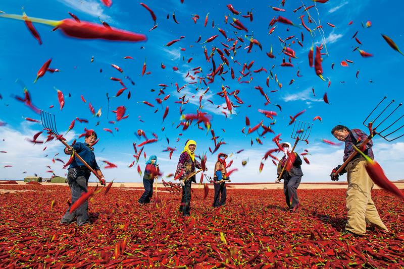 位于河西走廊西北端的甘肃金塔县,利用合作社模式发展特色规模化辣椒种植,走出了一条红红火火的脱贫致富路。 国务院扶贫办供图 张捷/摄