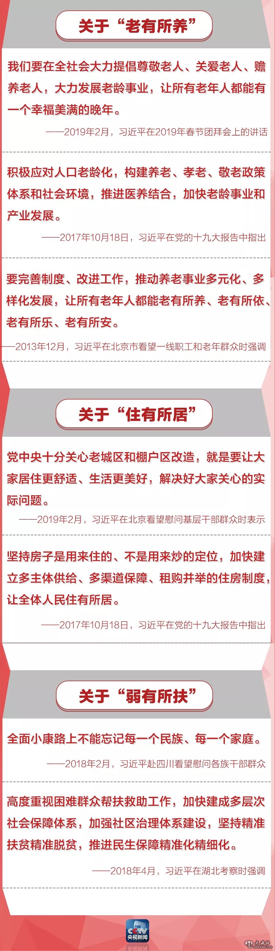 习近平总书记多次指出,必须多谋民生之利、多解民生之忧。要在幼有所育、学有所教、劳有所得、病有所医、老有所养、住有所居、弱有所扶上不断取得新进展。