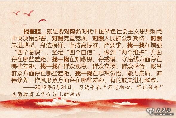 编者按:近期,中央“不忘初心、牢记使命”主题教育领导小组印发《关于在“不忘初心、牢记使命”主题教育中对照党章党规找差距的工作方案》,要求各地区各部门各单位在主题教育中对照党章党规,以正视问题的自觉和刀刃向内的勇气,逐一对照、全面查找各种违背初心和使命的问题,真刀真枪解决问题。