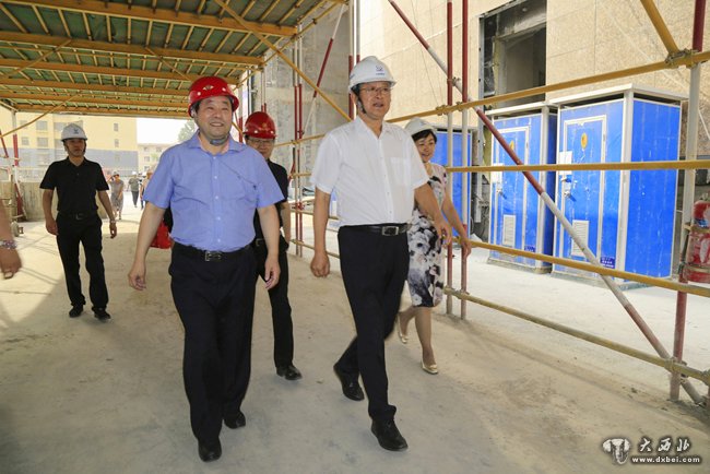 张柯兵(右)一行在盛达集团董事长赵满堂的陪同下到盛达金融广场调研。