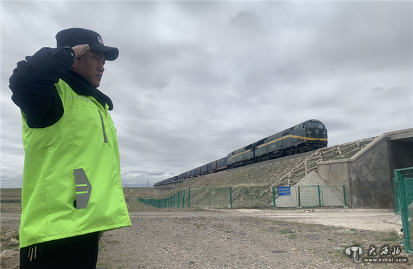 从拉萨出发,乘坐火车沿青藏铁路一路向北,透过车窗,每隔几百米就可以看到护路队员的身影。窗外,他们身姿挺拔笔直,伫立在铁路边,伴随着呼啸而过的列车抬起右臂,庄严地敬礼,给人以满满的安全感。