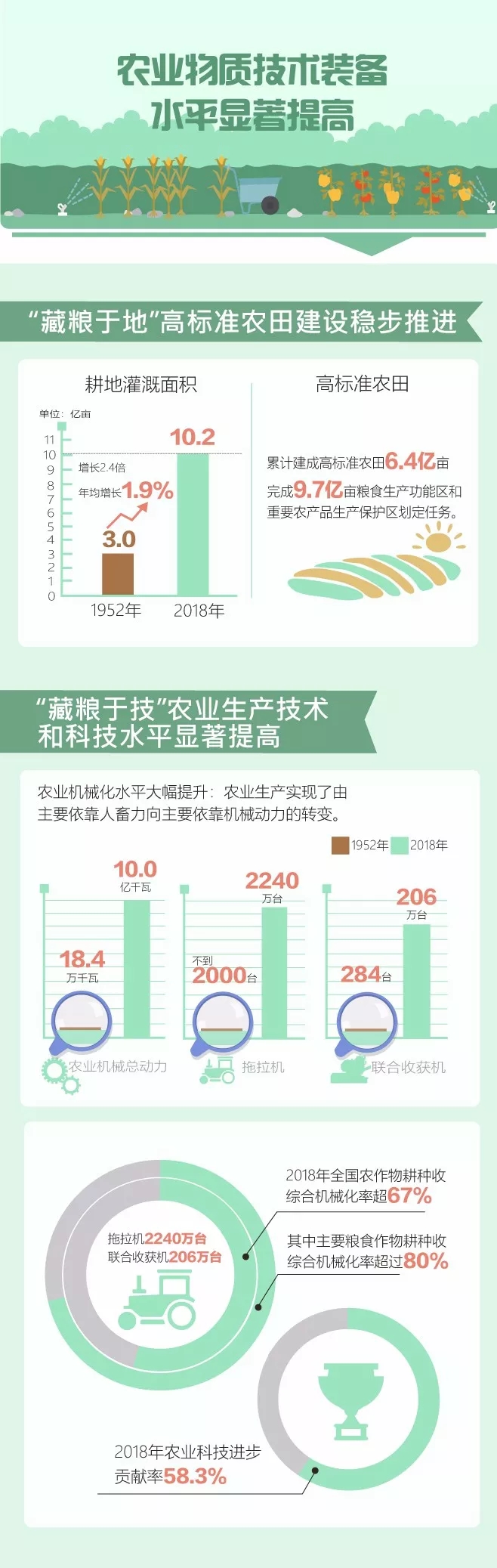 新中国成立70年来,中国用不到世界9%的耕地,养活了世界近20%人口。