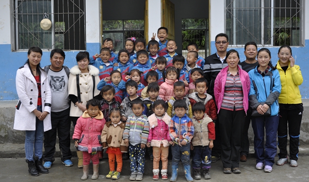 高荣与村里幼儿园师生合影。高荣供图