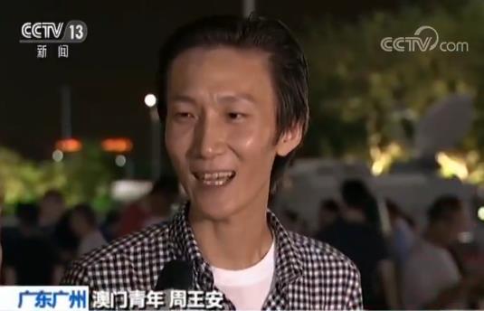 澳门青年周王安:我来自澳门,我其实也是刚到广州创业的,我是做科技跟青年工作,我其实想跟港澳的年轻人说,一定要过来这边走一走,感受一下,现在这边发展速度很快。希望祖国繁荣昌盛,粤港澳大湾区越来越好。