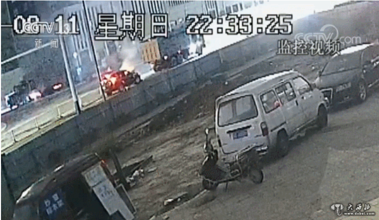 几秒钟后,追尾的小型越野车前机盖部分开始出现明火,刘亚峰见状立刻跑了过去。