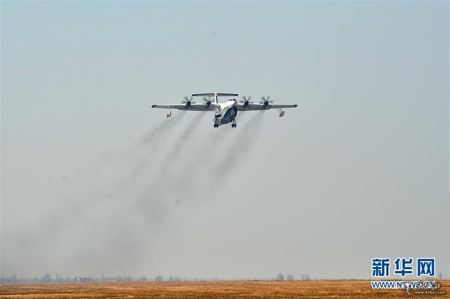 “鲲龙”AG600在珠海金湾机场起飞(2017年12月24日)。新华社记者梁旭摄