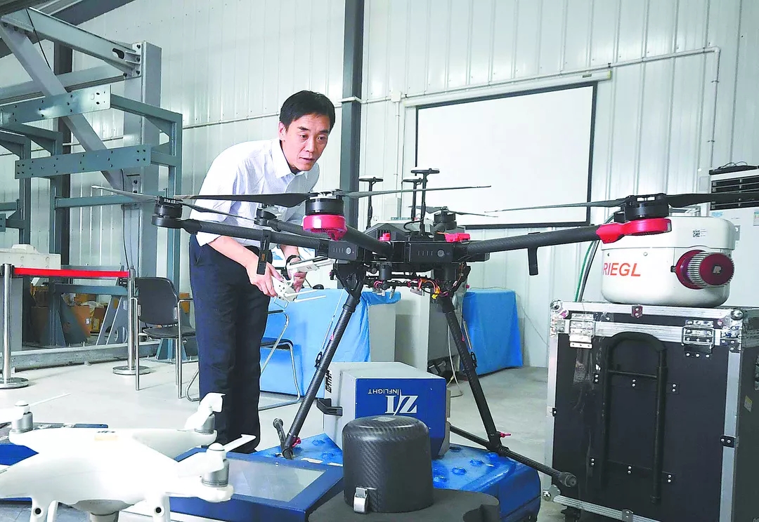 韩祖杰正在检查倾斜摄影无人机的运转情况。
