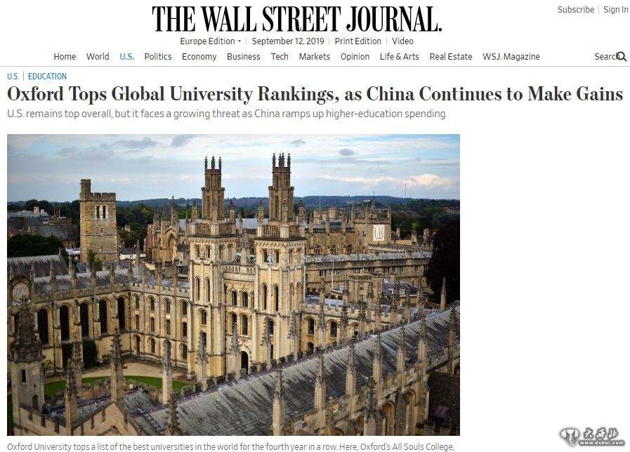 中国高校的排名提升,也引起了美国《华尔街日报》的注意。其在报道中称虽然美国在榜单的总体表现依旧领先全球,但是其正面临着中国越来越大的挑战,因为后者在不断增加对高等教育的投入。