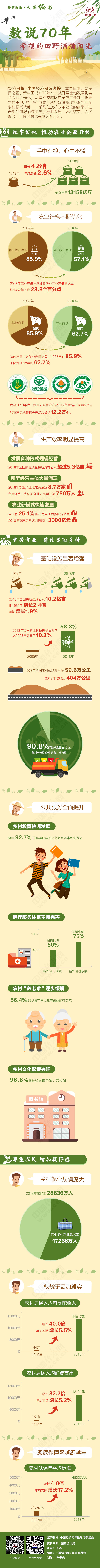 经济日报-中国经济网编者按:重农固本,是安民之基。新中国成立70年来,从开展土地改革到实行农业合作化,从建立家庭联产承包责任制到推进农村承包地“三权”分置,从打好脱贫攻坚战到实施乡村振兴战略,一系列“三农”改革建设的创举,让希望的田野洒满阳光。农业发展、农村繁荣、农民增收,广阔乡村越来越大有可为。