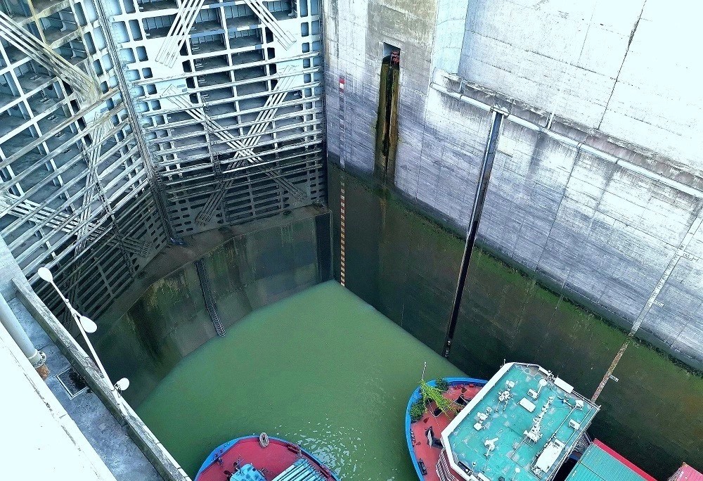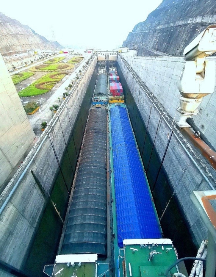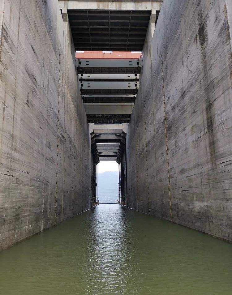 但是,仅用20分钟,海巡艇就从大坝上游垂直下降100米,进入大坝下游航道,整个过程平稳异常。