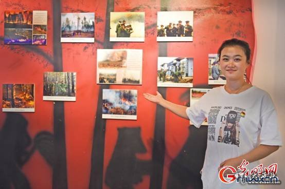 王惠在展馆介绍前哨林场发展历程(潘迪/摄)