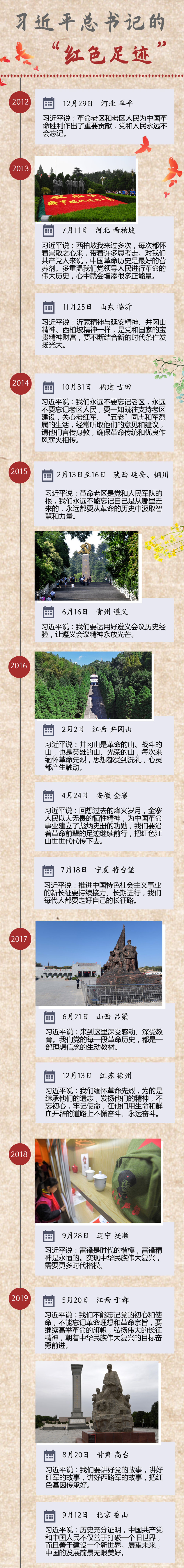 从太行深处到滹沱河畔,从沂蒙山区到遵义古城,从宝塔山上到六盘山中……党的十八大以来,习近平总书记的“红色足迹”遍及各个革命老区,为全党坚定理想信念、传承红色基因树立了榜样。