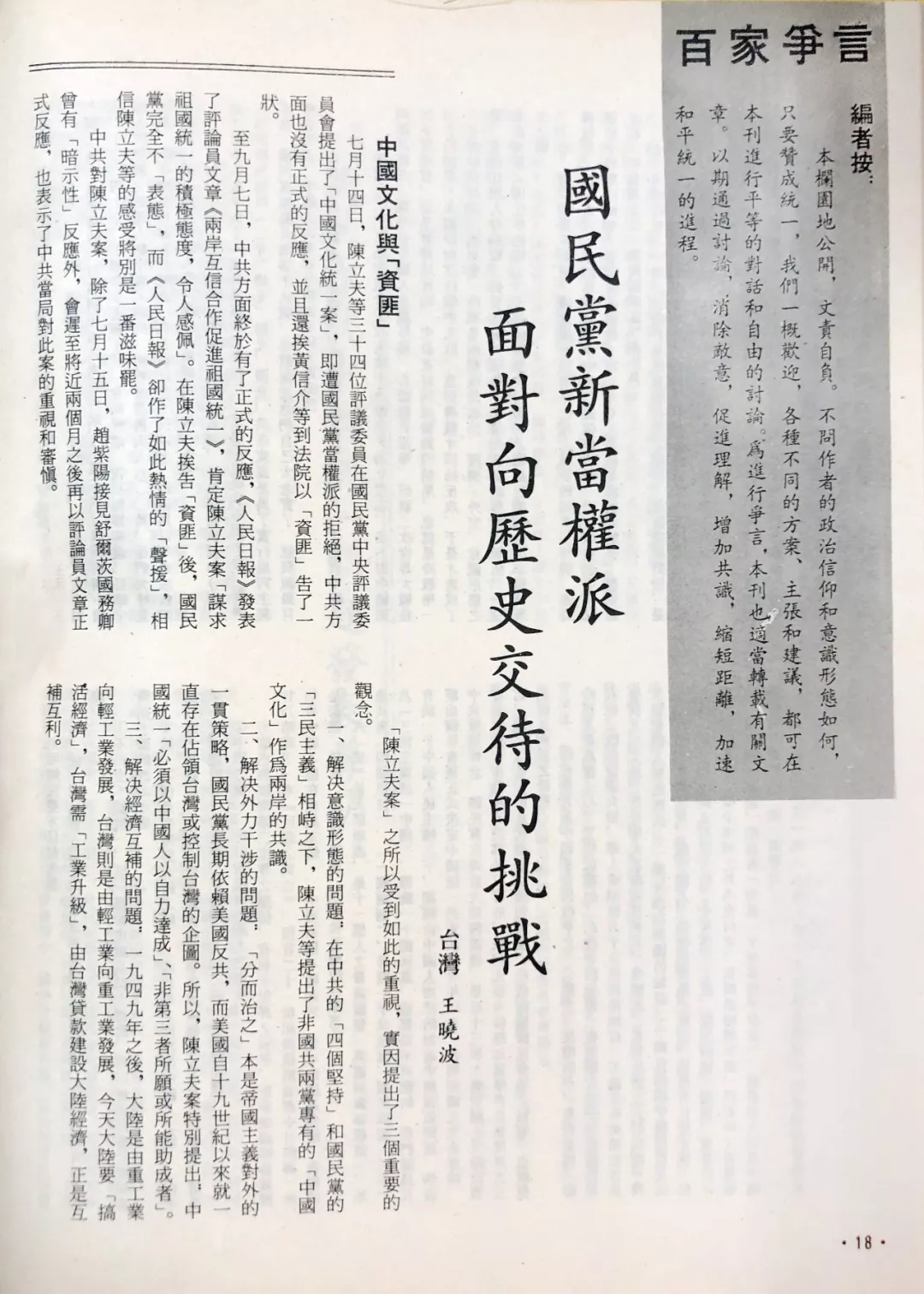 《统一论坛》创刊号