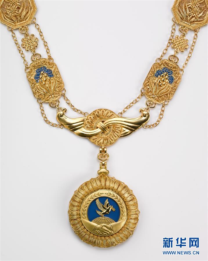 经中共中央批准,中华人民共和国国家勋章和国家荣誉称号颁授仪式将于9月29日上午10时在北京人民大会堂隆重举行。 这是“友谊勋章”。 新华社发
