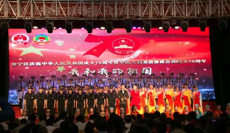 大 西 北 网 讯 9月27日,安宁区举行庆祝中华人民共和国成立70周年暨人民政协成立70周年《我和我的祖国》群众文艺节目汇演,整场演出充分展现了全区广大人民群众和政协委员的时代风采、昂扬风貌,奏响了全区高质量发展的最强音。